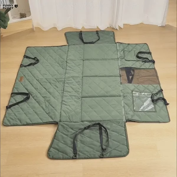 This waterproof and scratch-resistant car seat bed features a soft, sleek surface that repels pet hair, combining durability with a cozy feel for your pet's lounging pleasure.