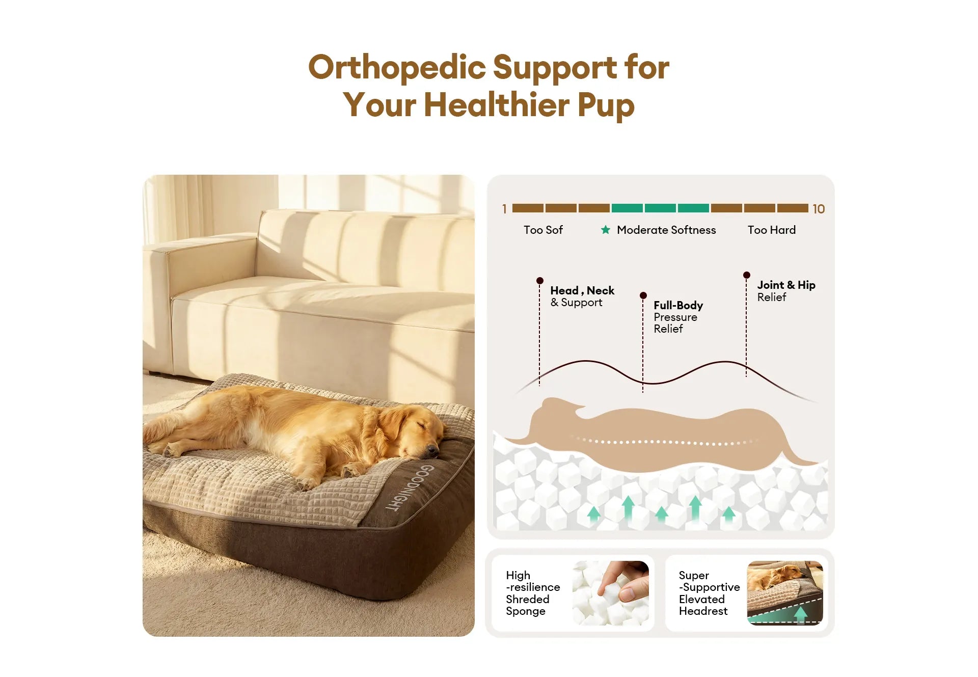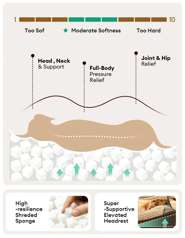 • Soporte de cabeza mejorado: La cama cuenta con un reposacabezas extra grueso, que proporciona un soporte óptimo para el cuello y la cabeza de su perro.