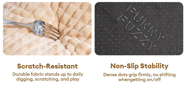 • Antideslizante: La parte inferior está cubierta con partículas antideslizantes, la cama del perro se fija de manera efectiva y no se mueve fácilmente de su posición.