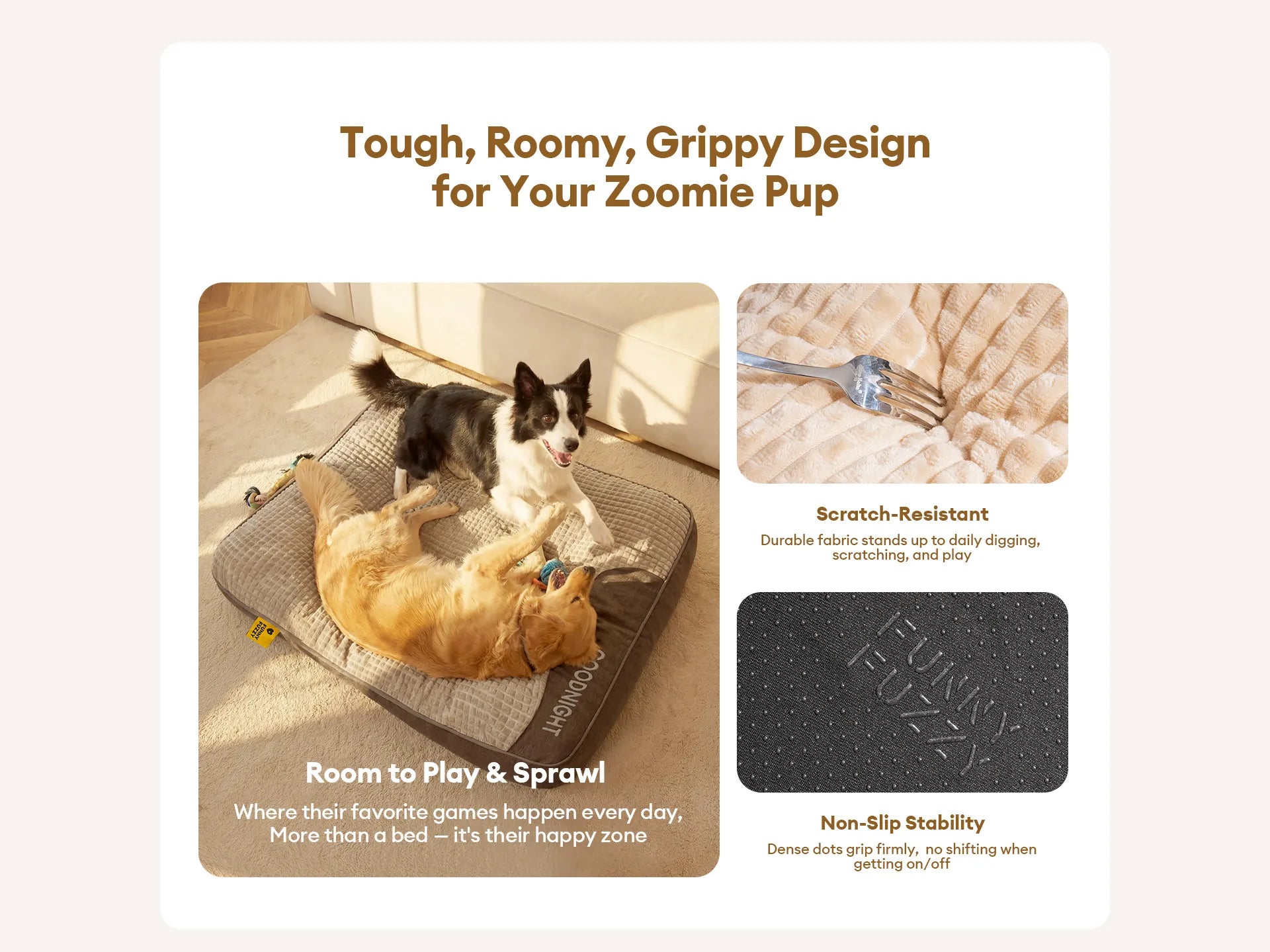 • Peluche y suave: Fabricado con tela gruesa y suave, ofrece una superficie de sueño acogedora para tu amigo peludo.