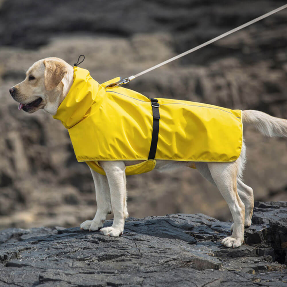 Rain or shine, big dogs can now stay dry and stylish in this sunny yellow raincoat.