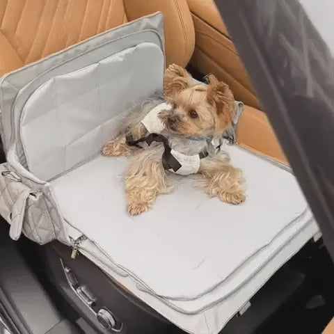 This car bag is equipped with thick and sturdy straps and multiple practical pockets, which can easily carry various items needed for pet travel, such as poop bags, leashes, wallets, etc. The unique design allows the bag to be put into a suitcase for convenient travel, and can also be used as a handbag, so you can take your pet with you at any time.