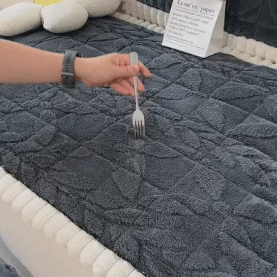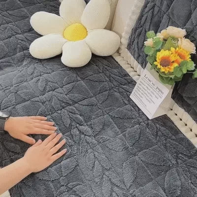 Thickened Short Plush Leaf Pattern Scratch Resistant Non-Slip Couch Cover