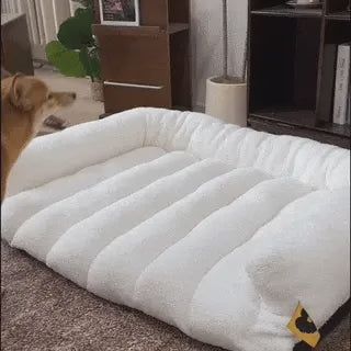 Crafted with teddy fleece fabric, a creamy cozy sofa bed keeps your pet warm and insulation, helping them stay comfortable and secure.