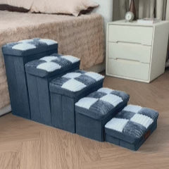 Detachable Chessboard Plaid Handcrafted Dog Stairs with Storage - Foldable Steps