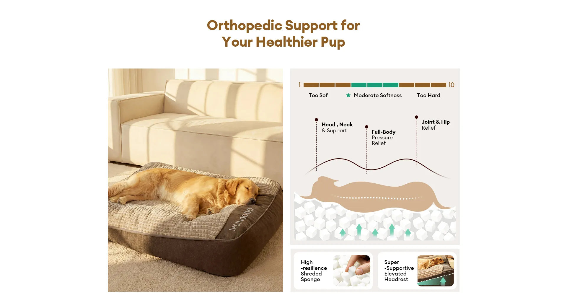Das Design mit erhöhter Kopfstütze bietet zusätzlichen Halt für Kopf und Nacken Ihres Hundes, verbessert den Gesamtkomfort und ermöglicht einen erholsameren Schlaf.
